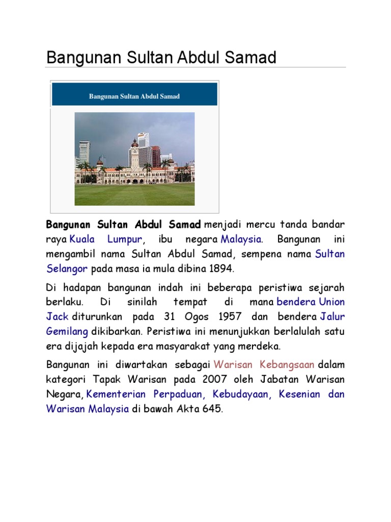 Titas bangunan sultan abdul samad kuala lumpur. Nama dymm sultan negeri selangor, almarhum sultan abdul samad ibni almarhum raja abdullah telah diambil untuk menamakan bangunan ini yang pada ketika itu memerintah tahun 1898 hingga 1957. So aq nak share la ngun korang sume. Nama bangunan sultan abdul samad diambil sempena nama sultan negeri selangor pada masa itu. Bangunan sultan abdul samad yang terletak di hadapan dataran merdeka adalah mercu tanda bagi bandar raya kuala lumpur, ibu negara malaysia.